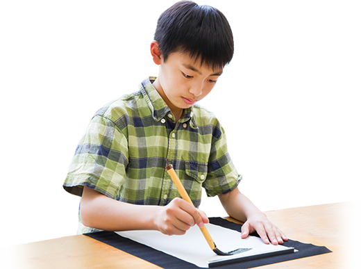 お手本を横にしていきなり授業に入ることはありません。まずは、習字の基本を繰り返し学ぶ「筆ならし」から毎回始めます。エースキッズ独自のやり方で無理なくリズミカルに書を習得していきます。