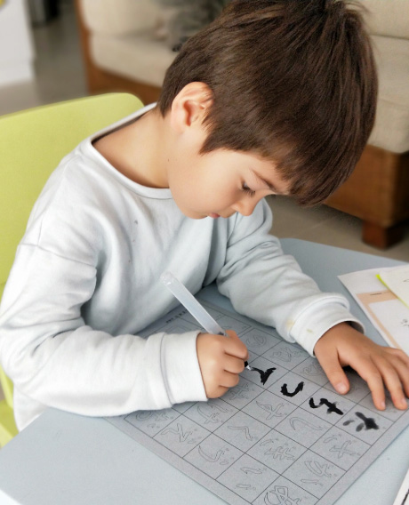 硬筆(えんぴつ)レッスン時にはACEペンシルリング(特許取得済)など最適なオリジナル教具を使って、まずひらがなを美しく正しく書くことから始めます。